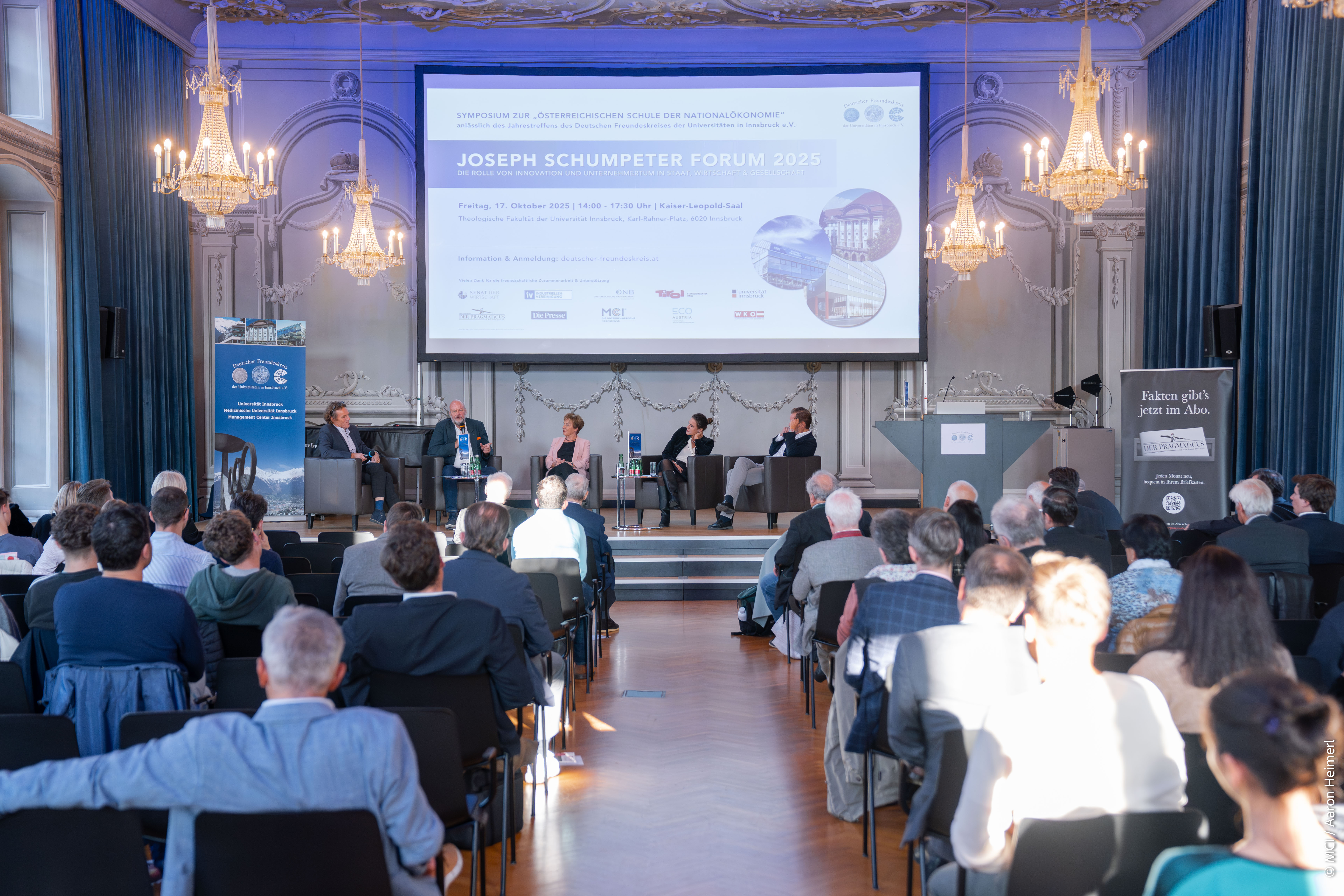 Anlässlich des diesjährigen DFK-Jahrestreffen in Innsbruck fand vor kurzem das vierte Joseph Schumpeter Forum statt. Damit soll die große Tradition und ungebrochene Aktualität der renommierten „Österreichischen Schule der Nationalökonomie“ gewürdigt und deren bis heute ungebrochen gültigen Erkenntnisse für die aktuellen wirtschaftspolitischen Herausforderungen herangezogen werden.